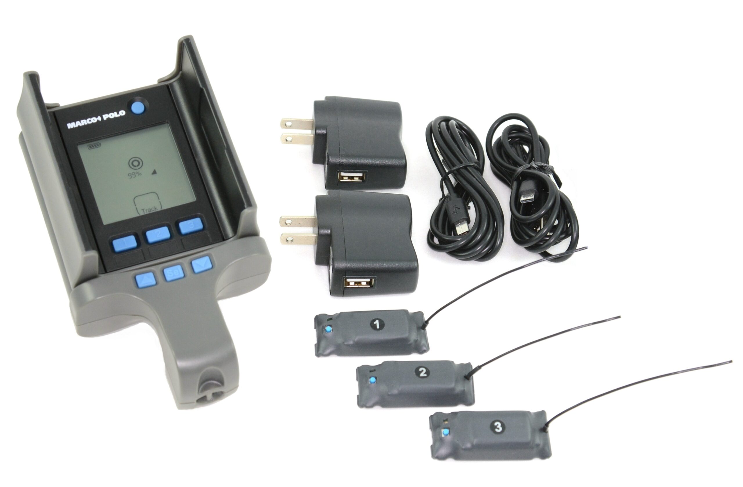 Should you lose control of your drone, just put your Marco Polo hand-held locator into track mode. The locator will immediately search for the tag transceiver, and when it acquires the signal give you real-time direction and distance to your model. Just walk, following the arrow and Marco Polo will lead you right to your model, within inches if necessary. If the tag transceiver is initially out of range you can walk or drive around until you come within range and the locator will then guide you directly to the location of your model.